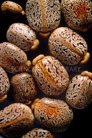 Castor seed is the source of castor oil, which has a wide variety of uses. The seeds contain between 40% and 60% oil that is rich in triglycerides, mainly ricinolein. The seed contains ricin, a toxin, which is also present in lower concentrations throughout the plant.